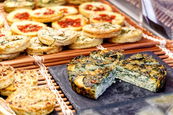 Außerdem bieten wir Euch verschiedene warme und kalte Speisen an – herzhafte Quiches, Pasteten oder auch Tortillas – um nur einige zu nennen. Die dazu passende Erfrischung findet Ihr selbstverständlich auch hier bei uns. Der Renner sind unsere Dipteller, die Ihr Euch nach Lust und Laune zusammenstellen lassen könnt.
