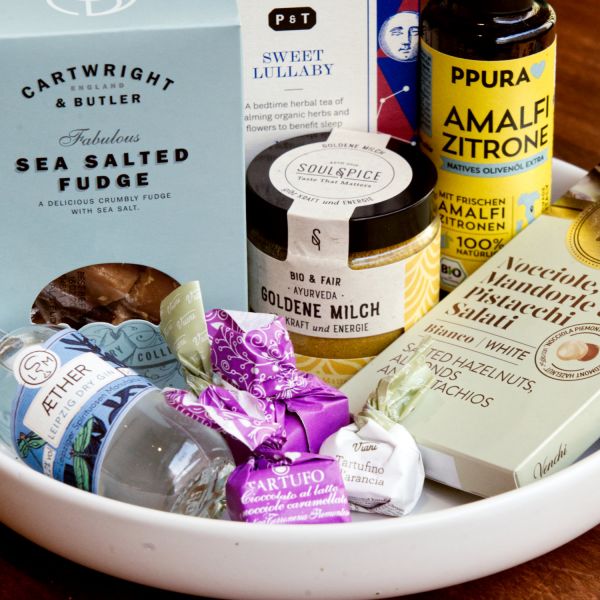 Eine bedachte Auswahl an Weinen (einige Sorten haben wir auch zum Probieren in unserem Ausschank) und Spirituosen zum Beispiel oder Chutneys, Öle und Gewürze aus dem Orient, Schokoladen aus Frankreich und Belgien – an passende Karten, Bücher und anderes Beiwerk haben wir auch gedacht. Die Liste der Dinge ist zu lang. Kommt einfach vorbei und seht euch um.